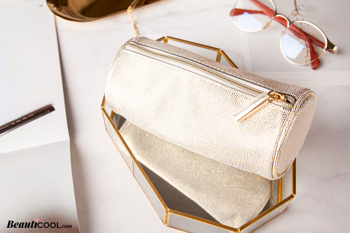 Re Nutriv Gold Cylinder Handbag กระเป๋าอเนกประสงค์สีทองสุดพรีเมียมจาก Estee Lauder ใส่ของใช้ก็ได้ ใส่เครื่องสำอางก็เลิศ !