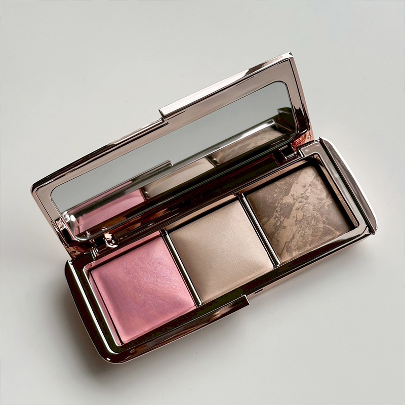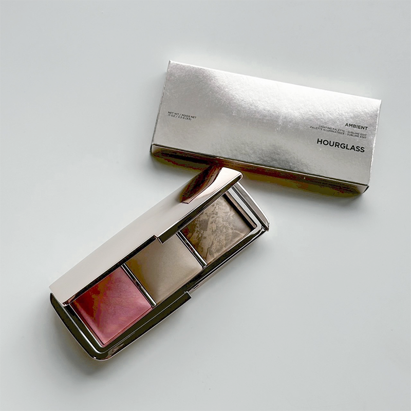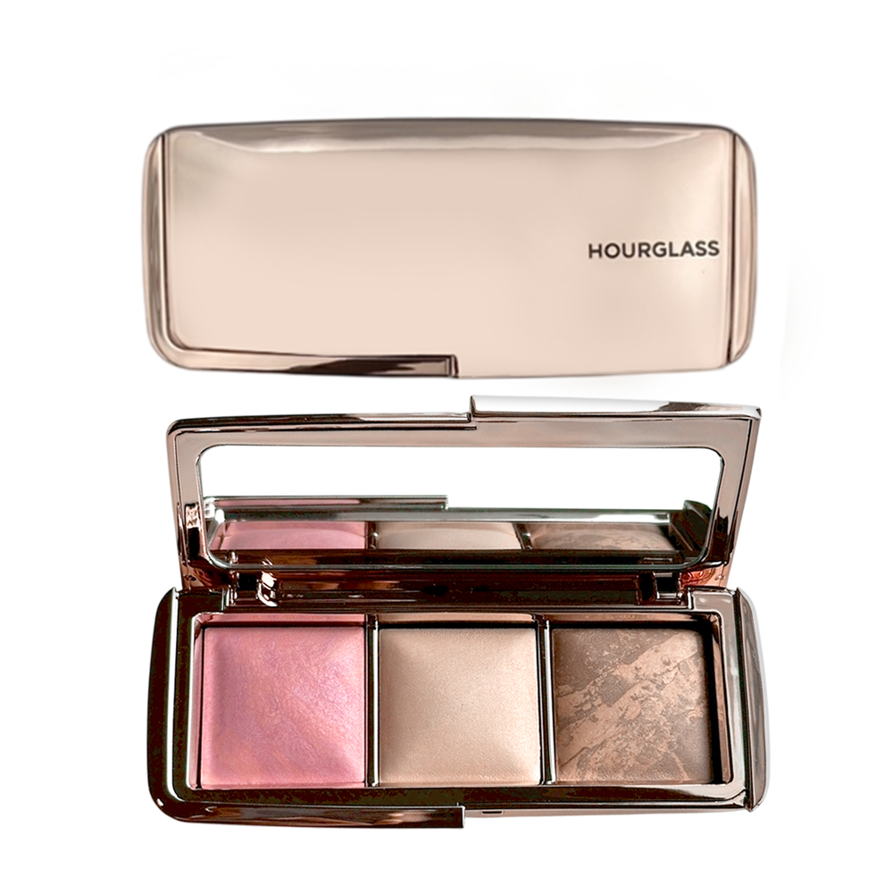 Hourglass พาเลตต์สามเฉดสีช่วยกระจายแสงบริเวณผิวหน้า ทำให้ดูเนียน สว่าง และเรียบลื่นราวกับผ่านฟิลเตอร์