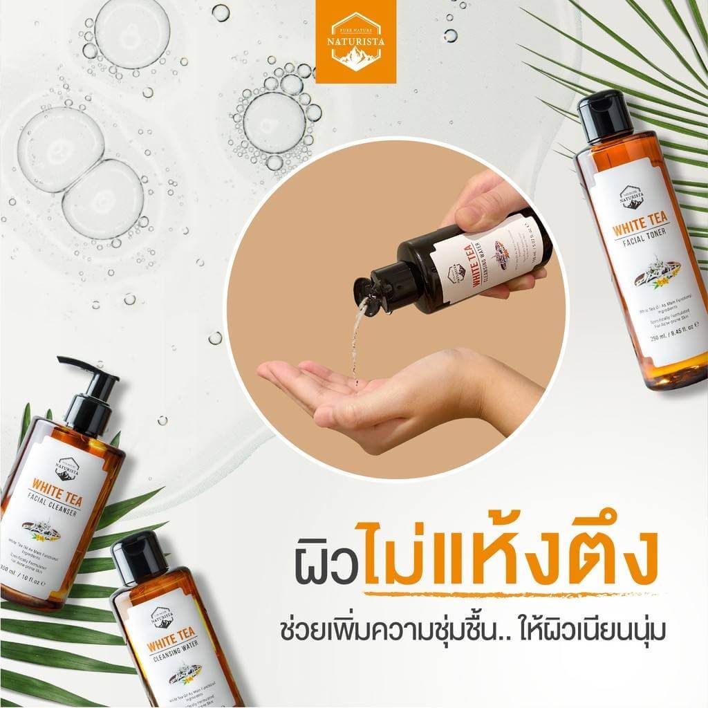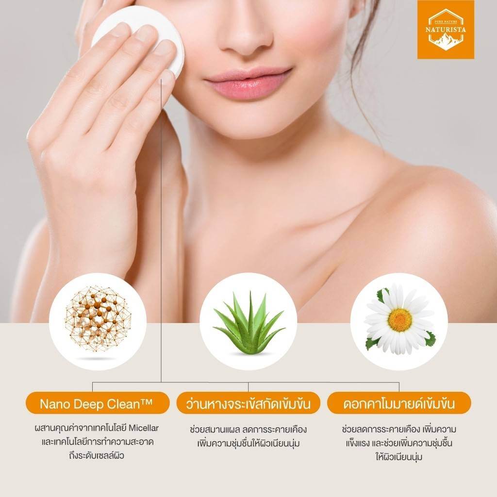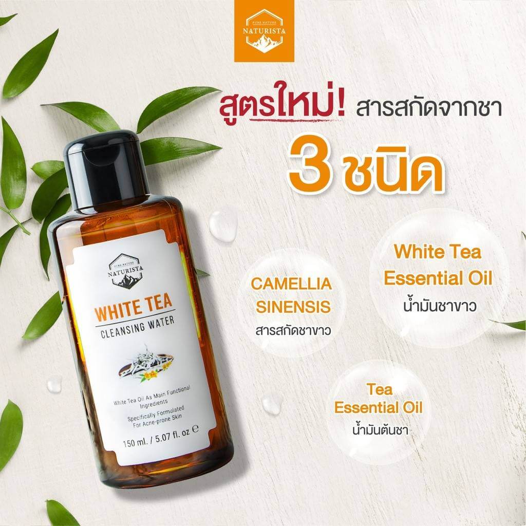 Naturista White Tea Cleansing Water คลินซิ่งเช็ดเครื่องสำอาง ทำความสะอาดล้ำลึก ด้วยเทคโนโลยี Nano Deep Clean ช่วยขจัดสิ่งตกค้างบนใบหน้าอย่างล้ำลึก ผสานคุณค่าจากเทคโนโลยี Micellar และเทคโนโลยีการทำความสะอาดถึงระดับเซลล์ผิว เอกสิทธิ์เฉพาะจาก Naturista ช่วยขจัดสิ่งตกค้างในชั้นรูขุมขน ต้นเหตุของปัญหาสิว เนื่องจากสิ่งสกปรกที่อุดตันบนใบหน้า