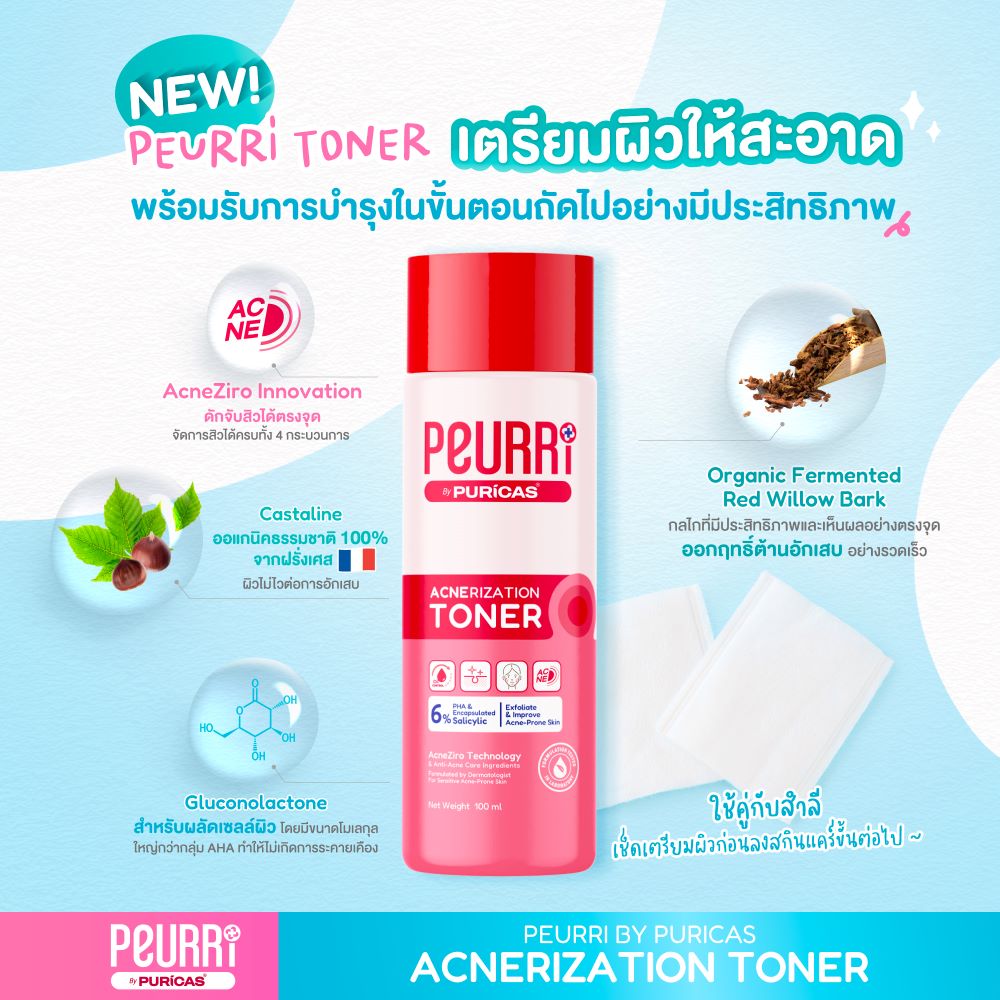 Peurri By Puricas Acnerization Toner 100ml, รีวิวโทนเนอร์ลดสิว Peurri ,Peurri Acnerization Toner , Peurri By Puricas Acnerization Toner  ราคา , Peurri By Puricas Acnerization Toner  รีวิว